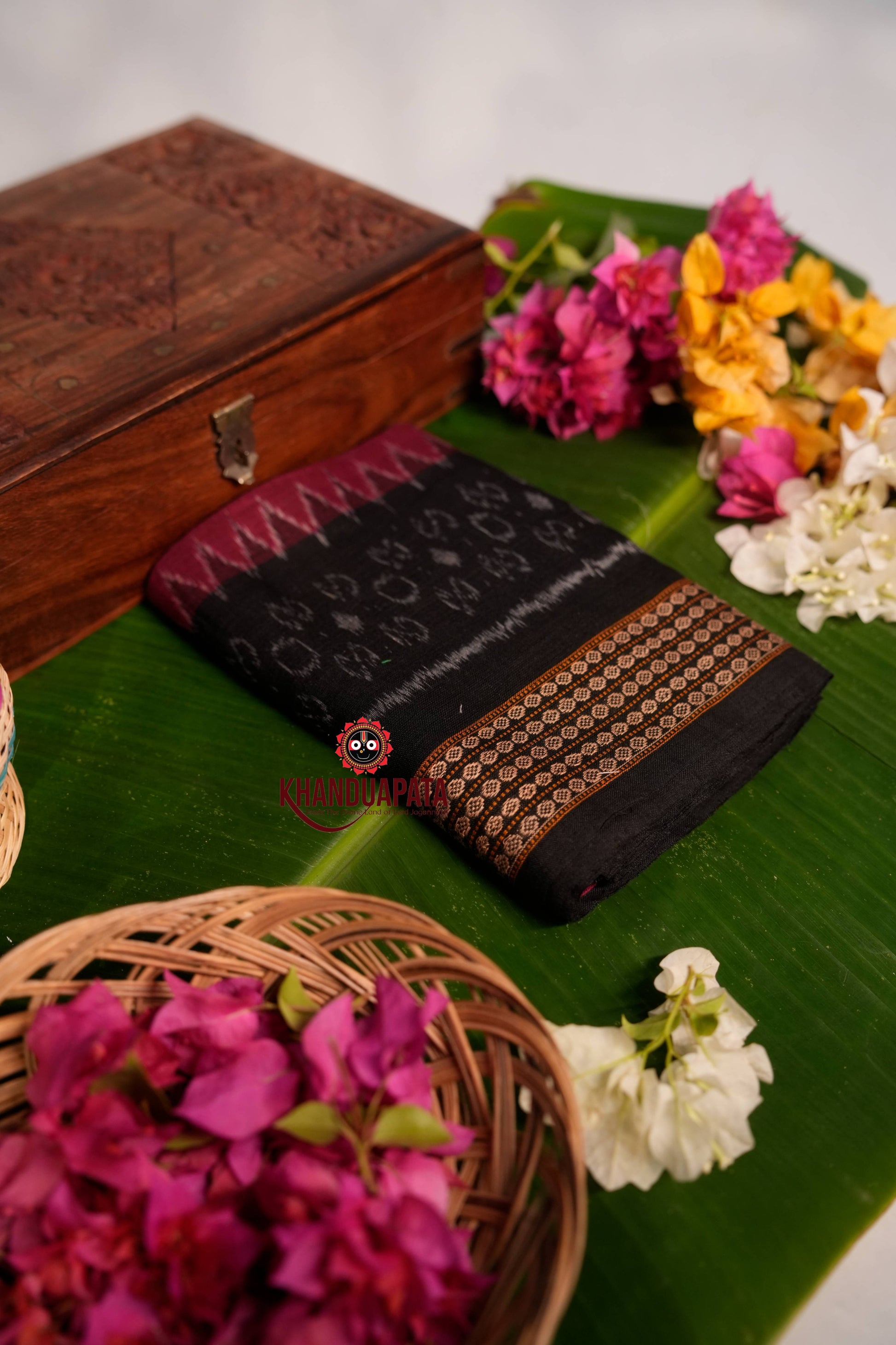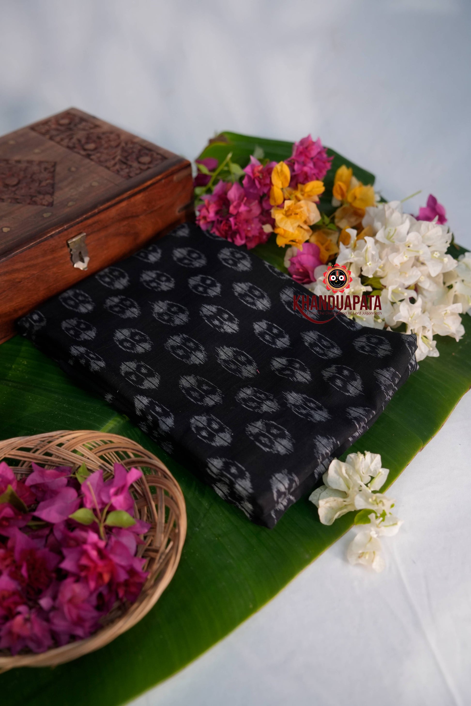 Black & Red Ethnic Design Unstitched Cotton Suit For Women