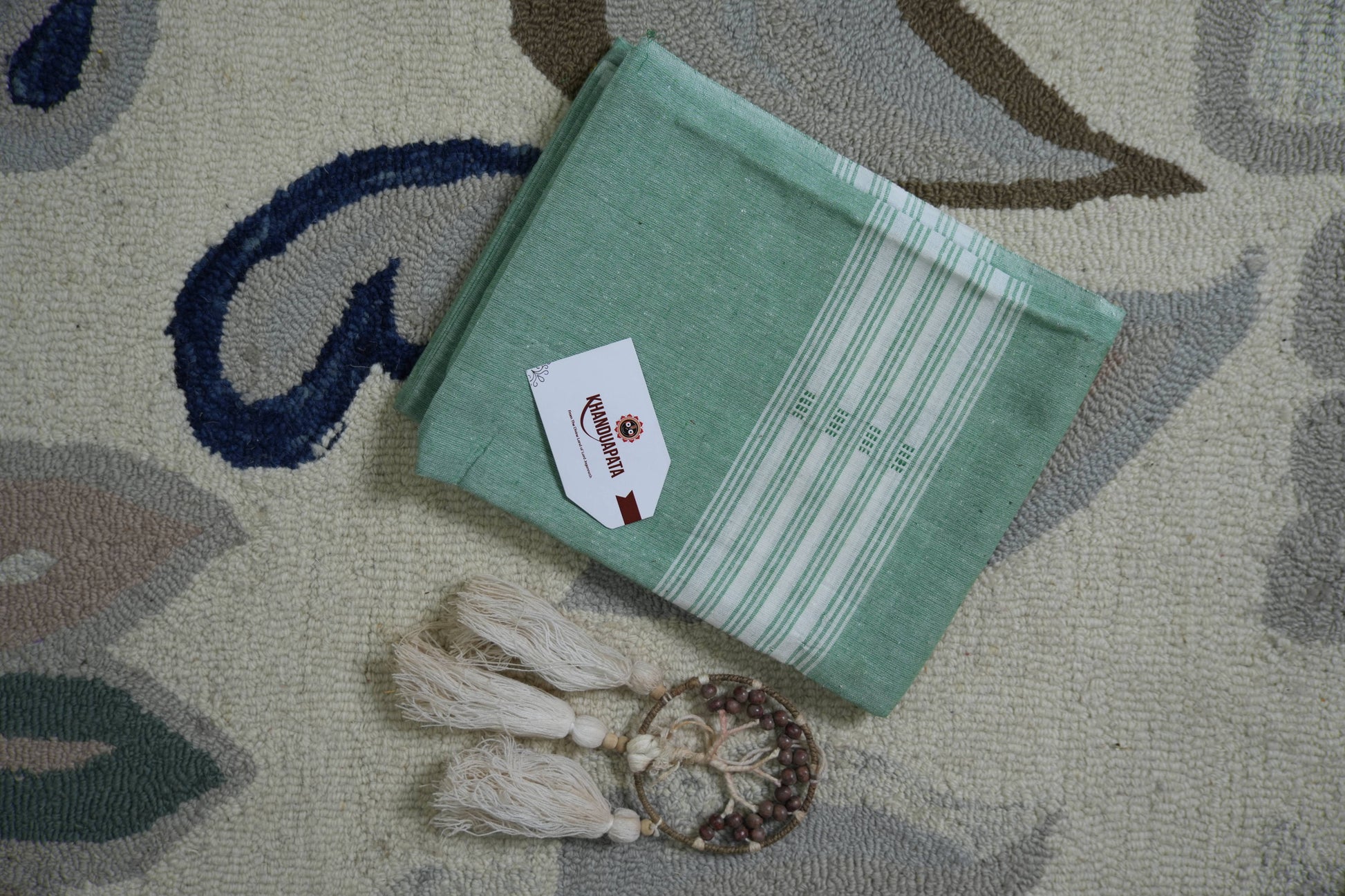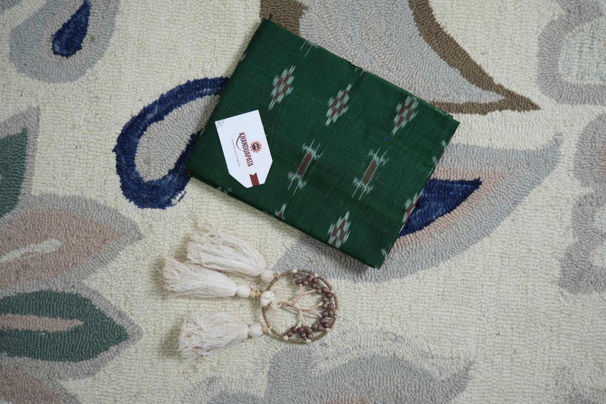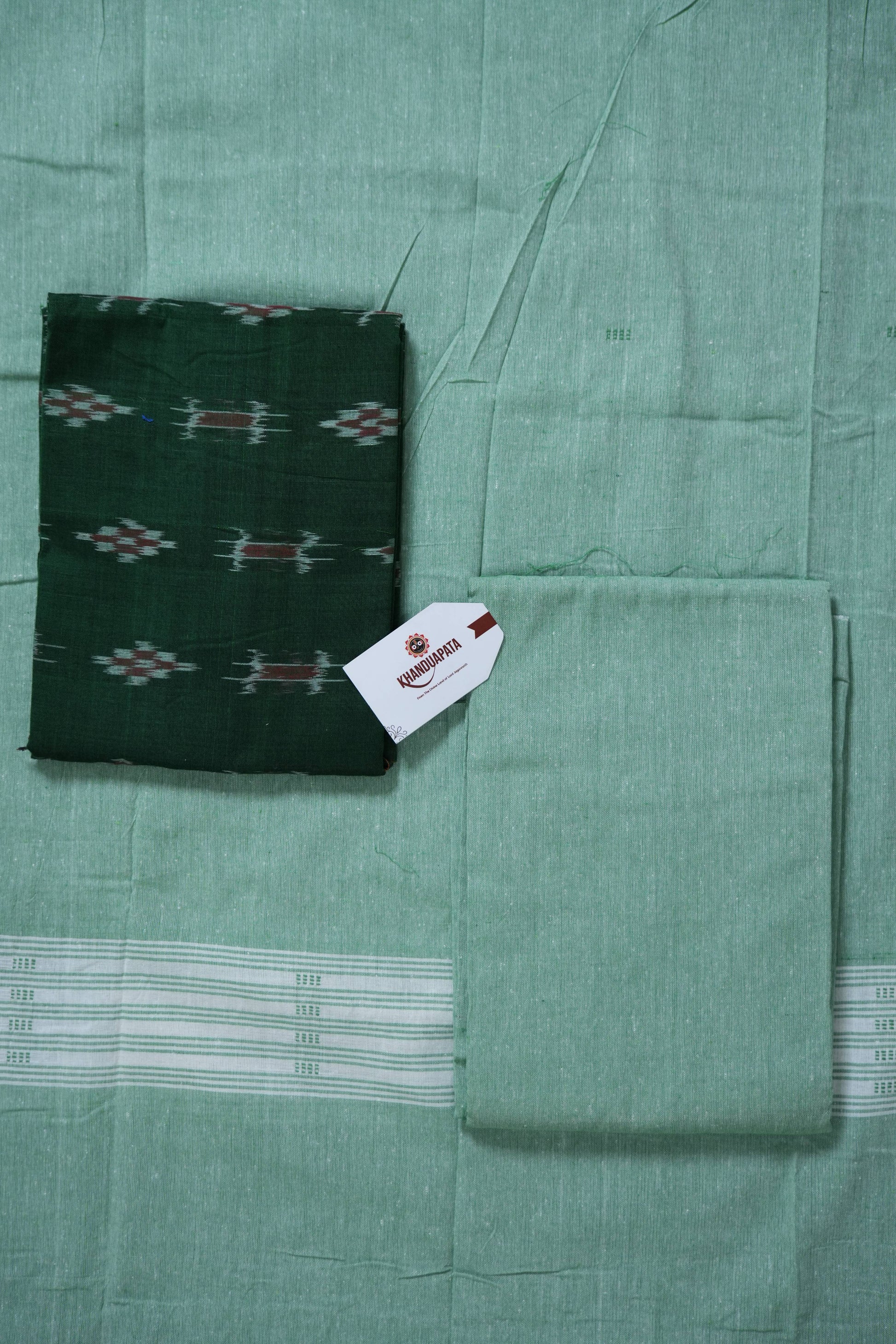 Green & Blue Pasapali Design Unstitched Cotton Suit For Women