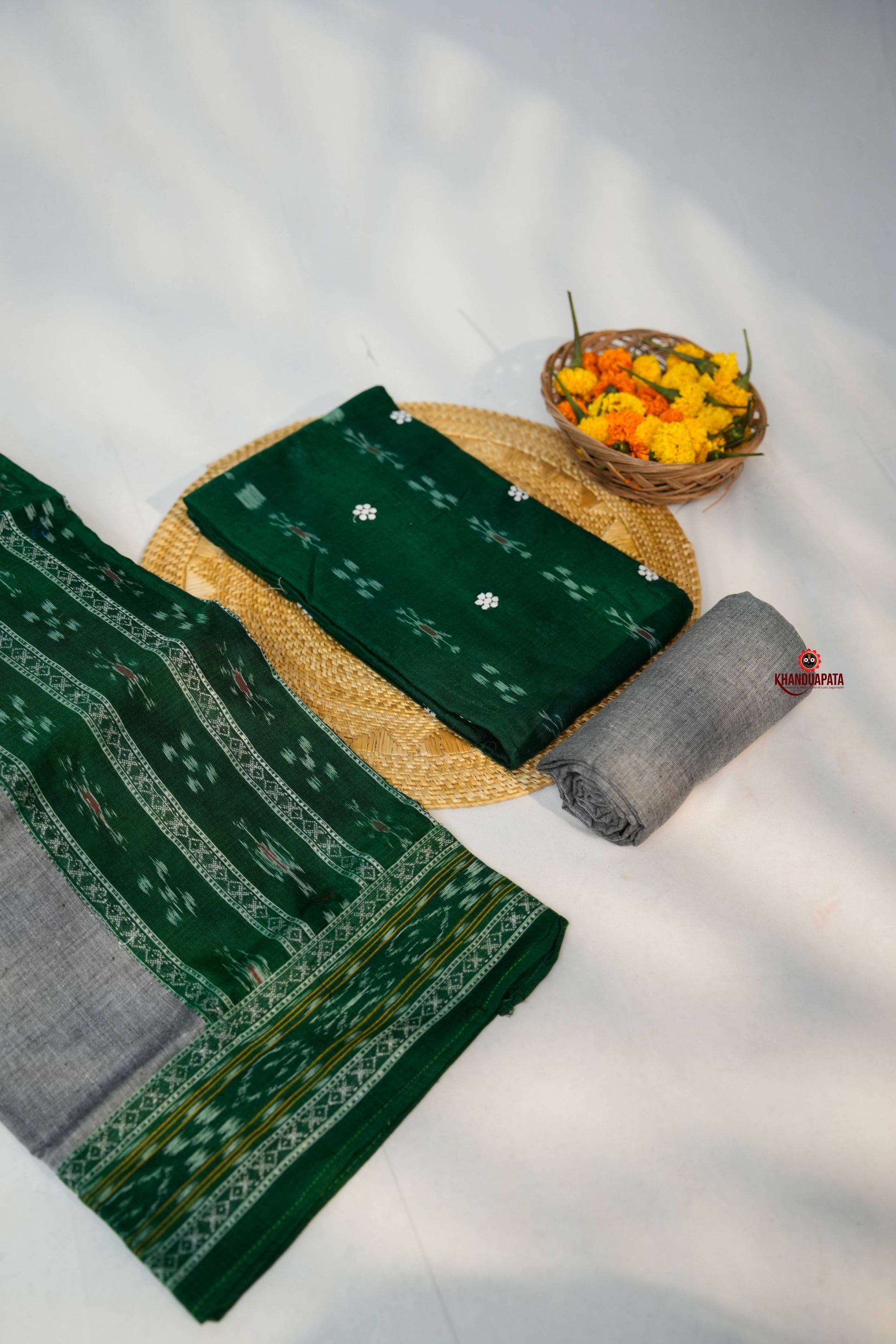 Green & Grey Small Flower Design Unstitched Cotton Suit For Women