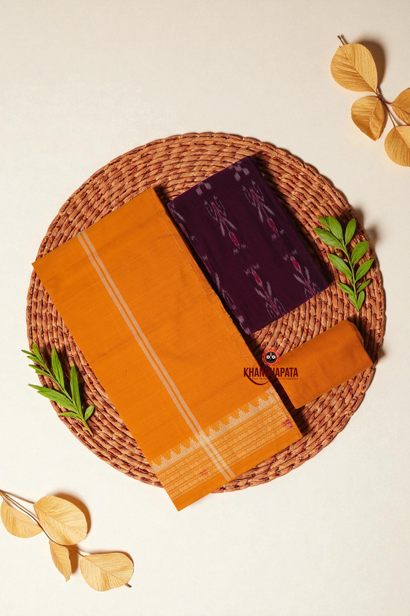 Maroon & Yellow Flower Design Unstitched Cotton Suit For Women