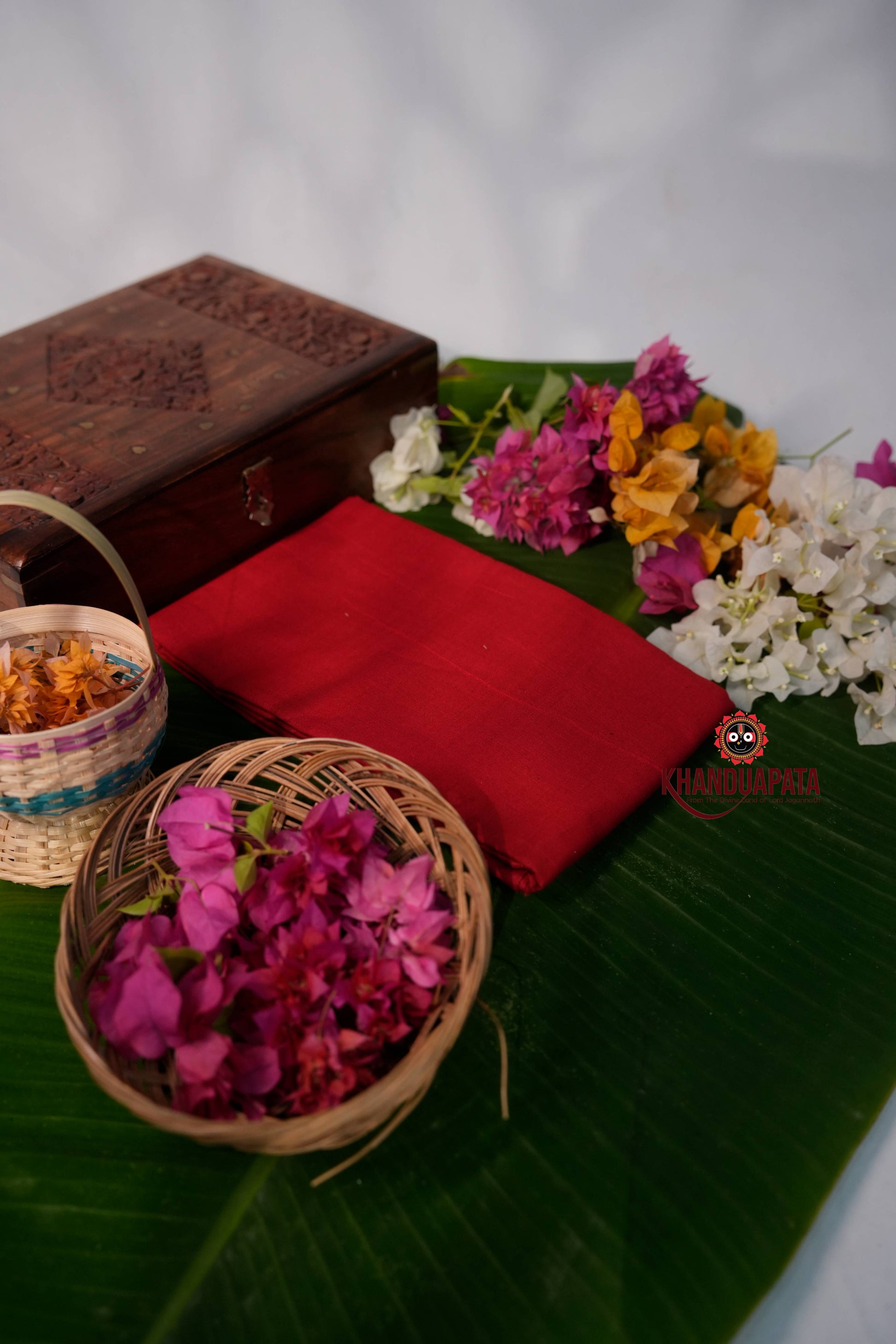 Red & Green Ethnic Design Unstitched Cotton Suit For Women