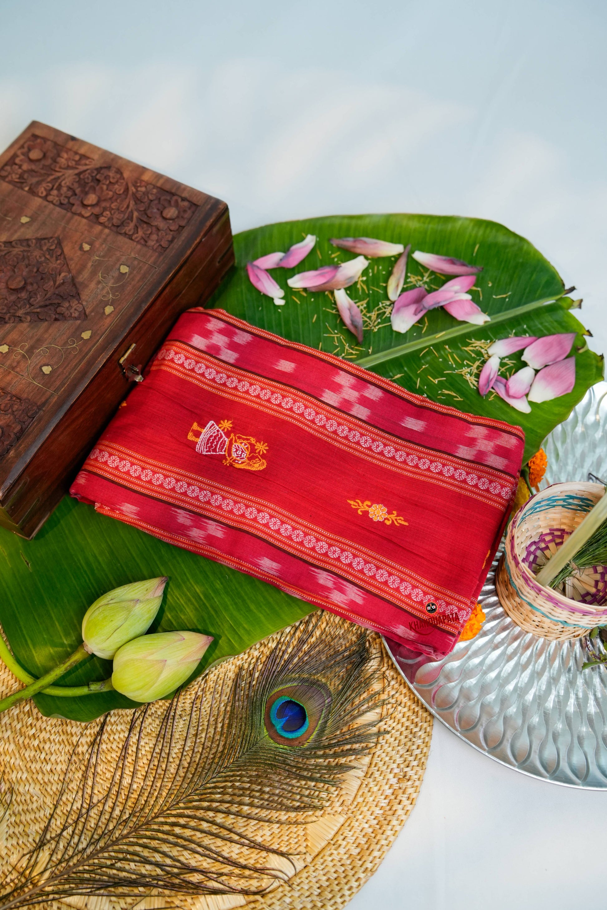 Red & Yellow Doll Design Unstitched Cotton Suit For Women
